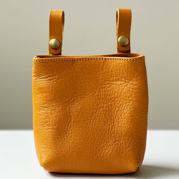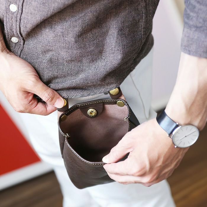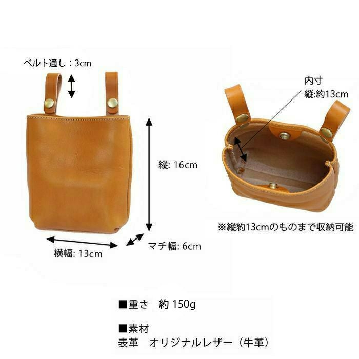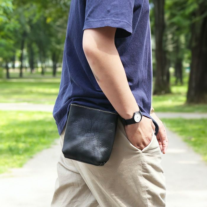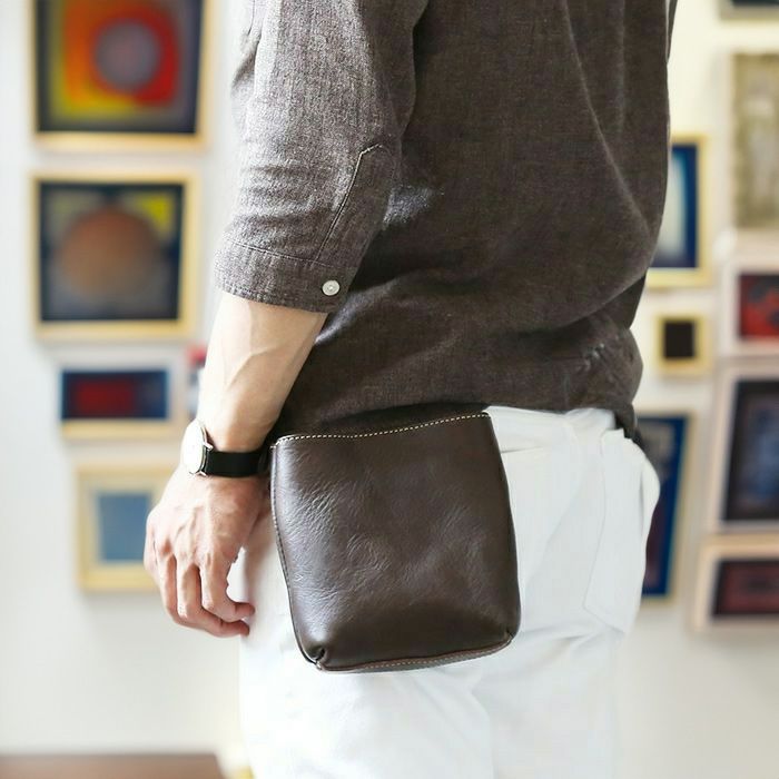 本革の素材感をそのままデザインに取り入れた、個性派ベルトポーチ。