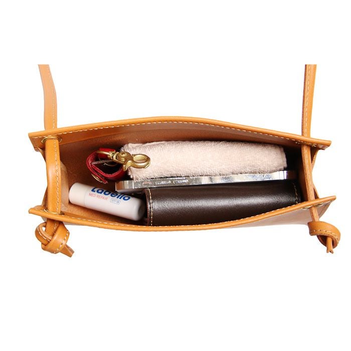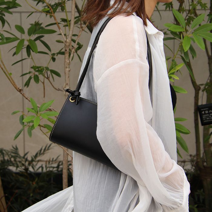 ストラップの結び目を変えることで3WAYでの使用が可能。斜め掛け、肩掛け、手持ちと普段使いからドレッシーな服装の場面などあらゆるシーンに合わせた使い分けが可能です。