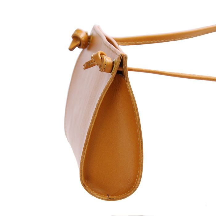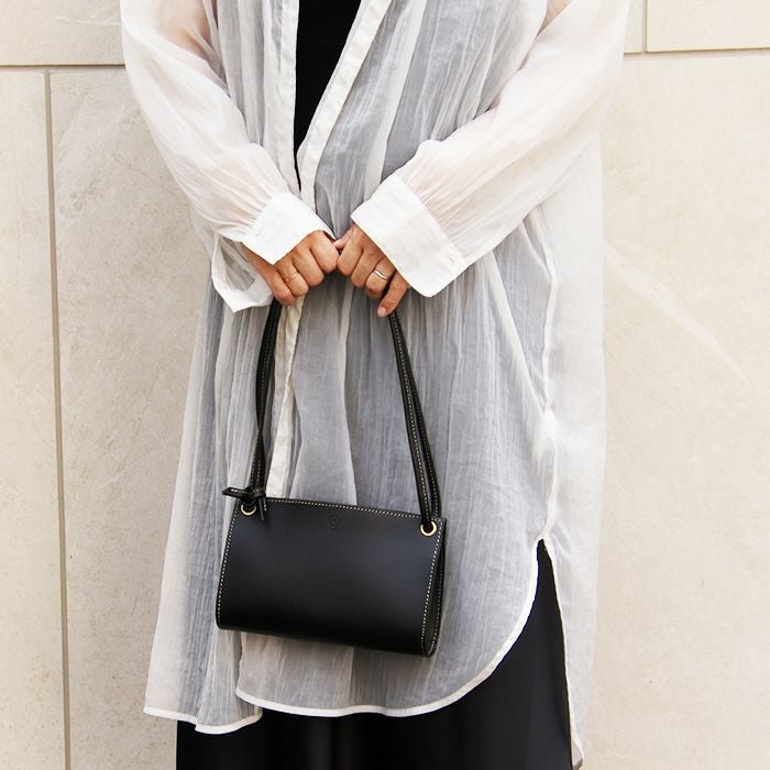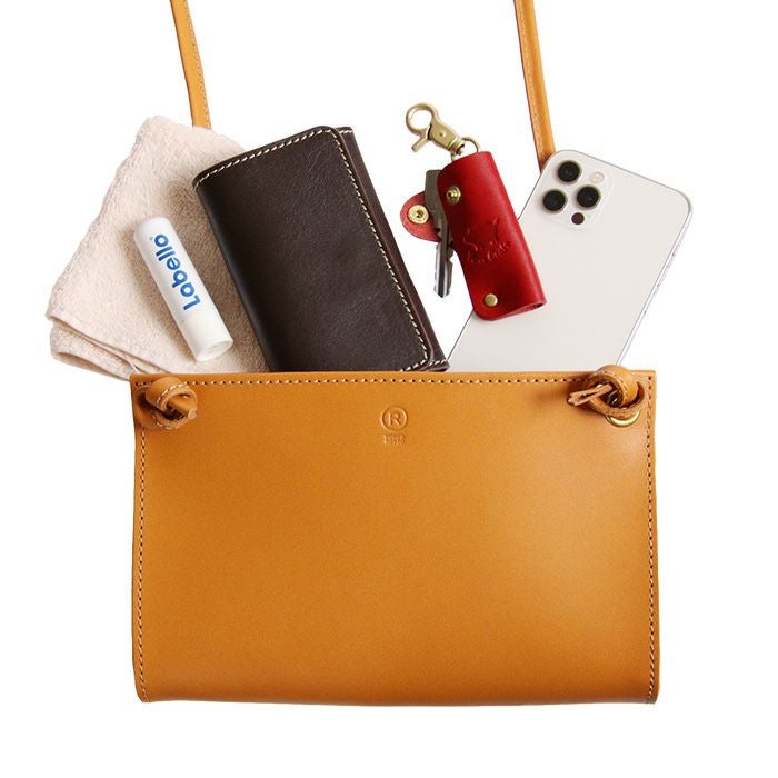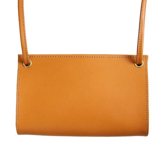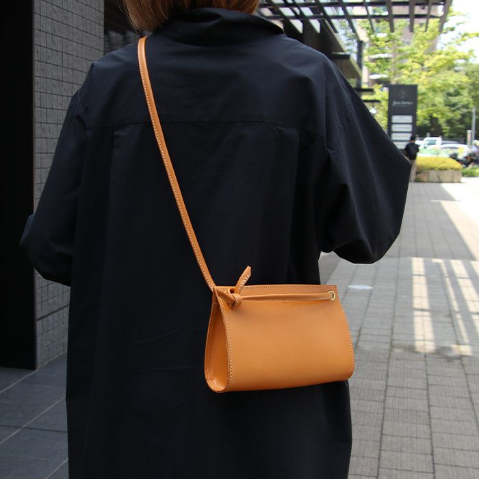 レザーの魅力を引き立てるフラットなデザインのショルダーバッグ。金具の使用を最小限にし、シンプルながらレザーの緩やかな曲線美が楽しめる存在感のあるデザインです。