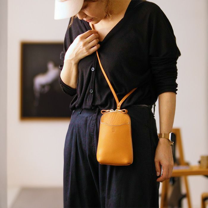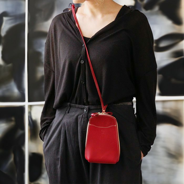 ソフトレザーとハードレザーをあわせた贅沢仕立てのポシェット。荷物を入れた際にバッグのシルエットを綺麗に保てるよう、