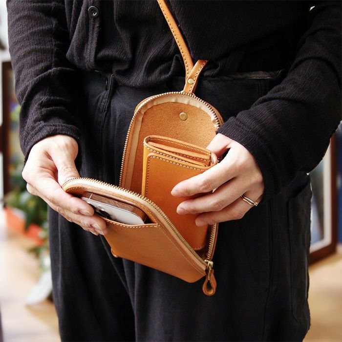 スマートフォンやコンパクト財布など取り出す機会が多いアイテムを第2のポケットとして収めておくことができます。