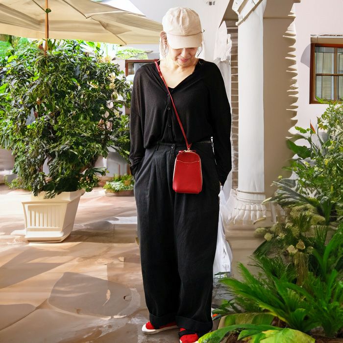 ポルコロッソ商品では初めて採用した、コーディネートにあわせて自在に調整できるレザーストラップは、簡単に長さの調整ができる作りとなっています。