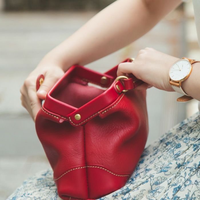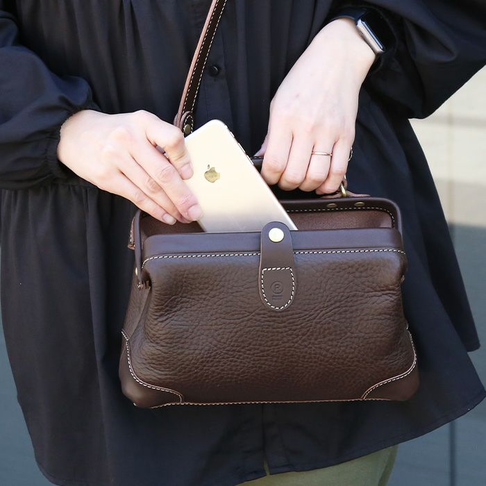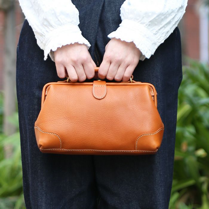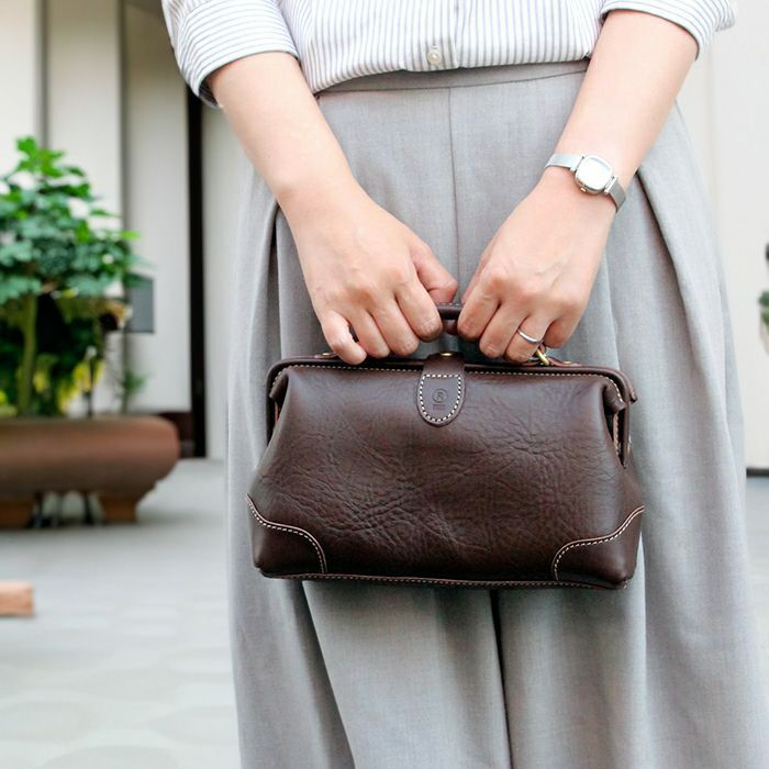 大人の女性に持ってほしい、がま口のレザーバッグ
