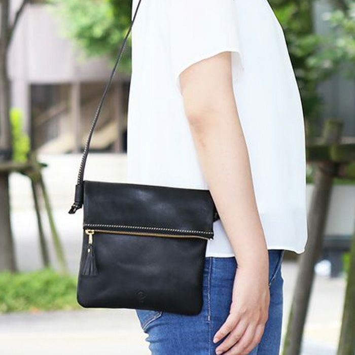 ショルダー 肩に気軽にかけられる、柔らかい革紐