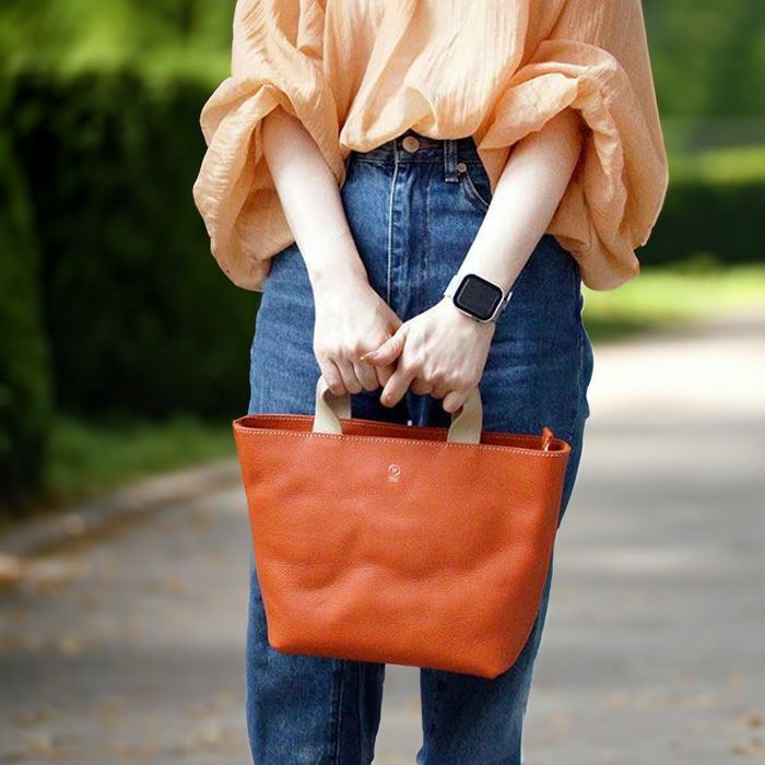 スーツに合わせたビジネスカジュアル、シンプルなトップスやデニムと合わせてバッグを主役にしたコーディネート、
