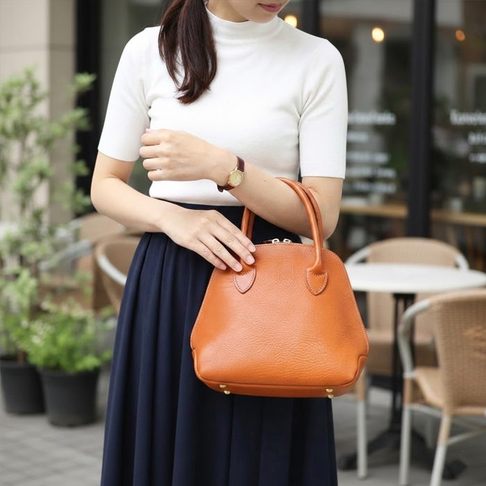 外観 コロンとした丸みのあるシルエットが可愛いタウンユースのミニトートバッグ。