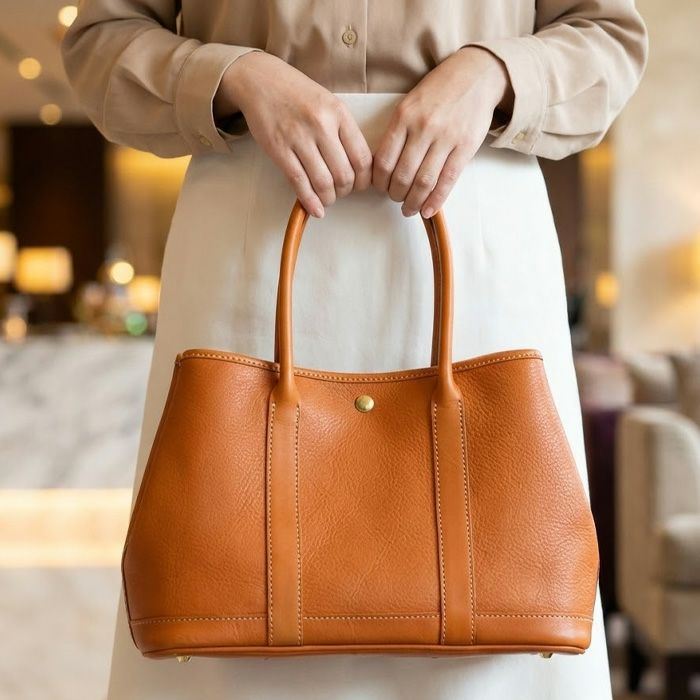 職人の丁寧な仕事と、細やかな気配りによって形作られた愛らしいトートバッグ。何気なく置いた姿も様になるフォルムは、大人かわいい落ち着いた雰囲気に仕上がっています