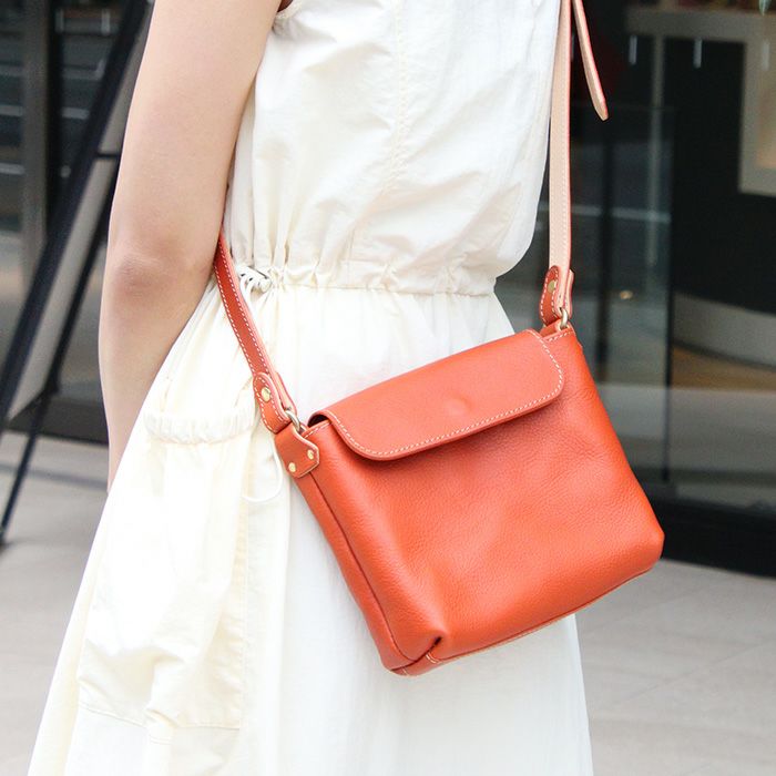 街歩きに最適なかぶせ付きのコンパクトショルダーは男女問わずお使い頂けるモデルとして開発しました。
