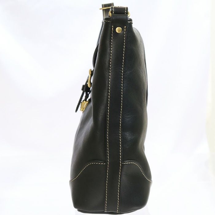 側面 ソフトレザーなので収納する物によってフォルムが柔らかく変化します。荷物を沢山入れても頑丈なようにしっかりとした補強をしています。