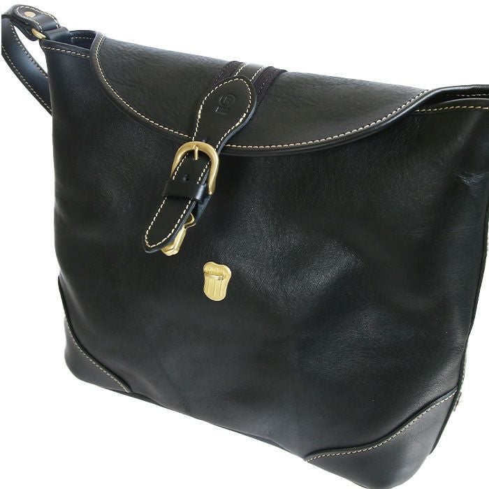 顔となるベルトデザインが印象的な立体かぶせのショルダーバッグ。