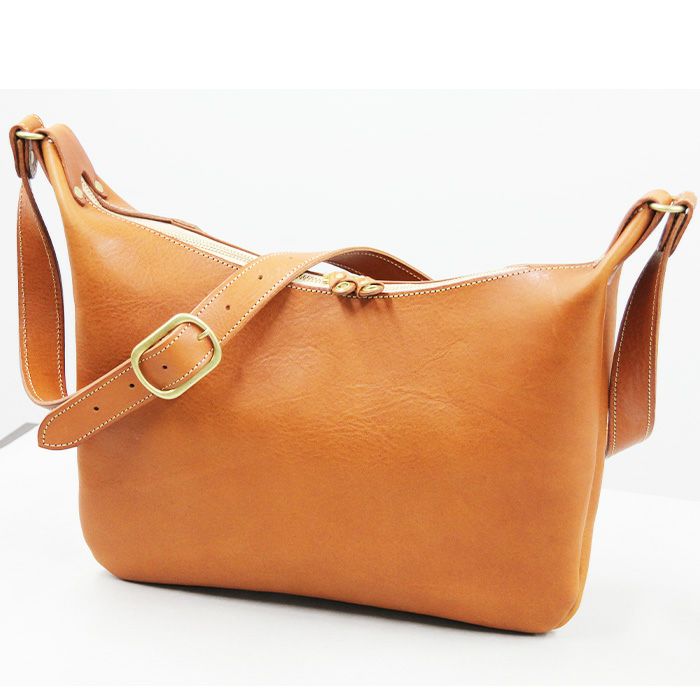 男女問わず使い易いシルエットとバランスにこだわって製作した薄マチ仕立てのショルダーバッグのMサイズです。