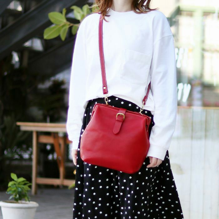 薄マチで大きくもなく小さくもなく、ほど良いサイズ感ですっきりとした印象に仕上がっています。財布やポーチなどの必要最低限のものを入れて気軽にお出かけするのにピッタリです。