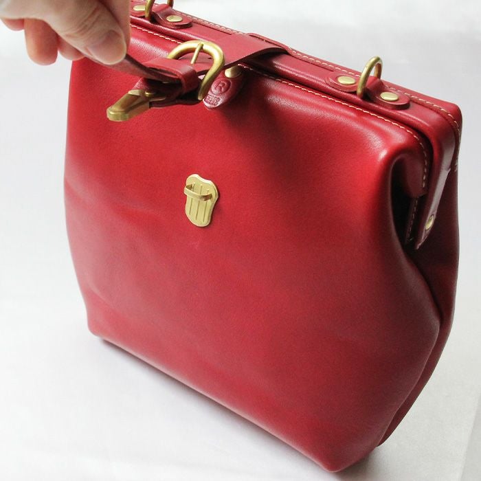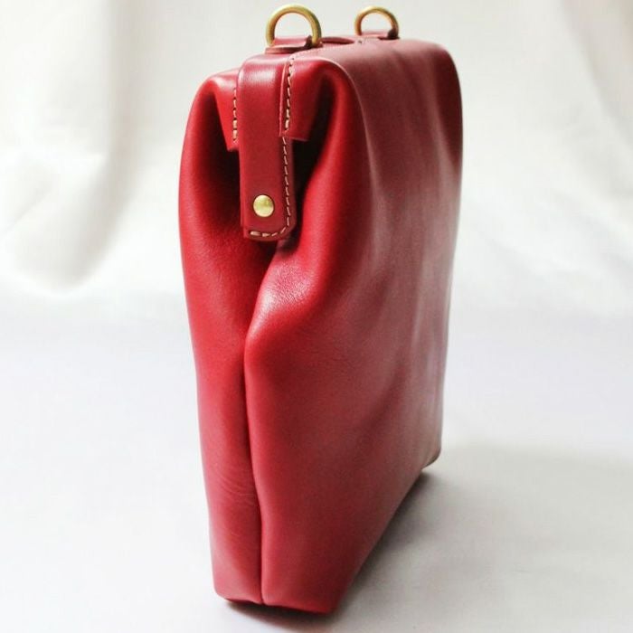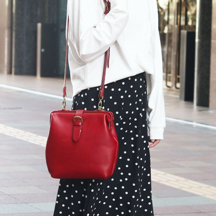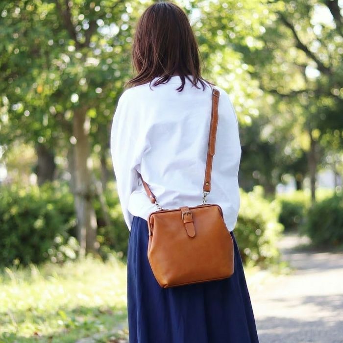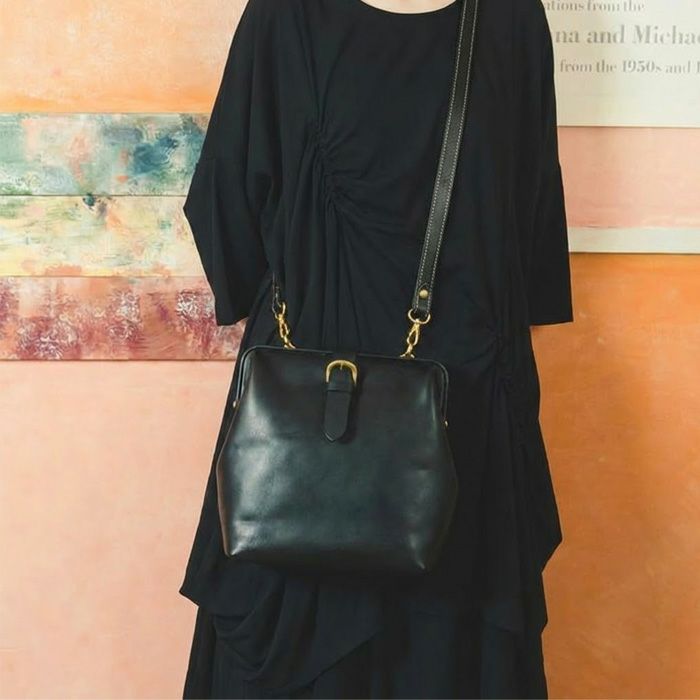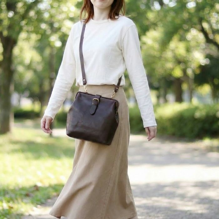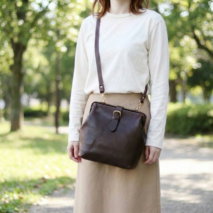 前面の差し込み金具がぱっと目を惹くショルダーバッグをリリース。人気の高い口枠ショルダーバッグシリーズにデザインを変えた薄マチタイプが登場しました。