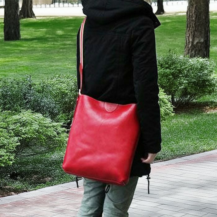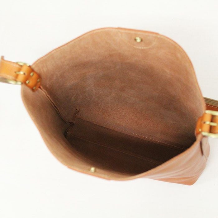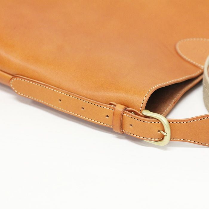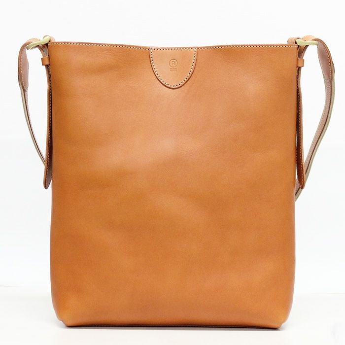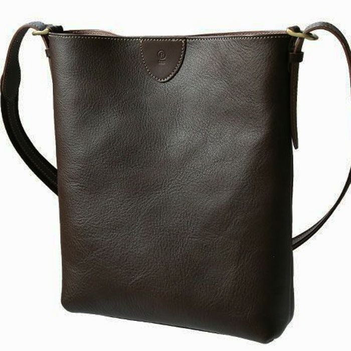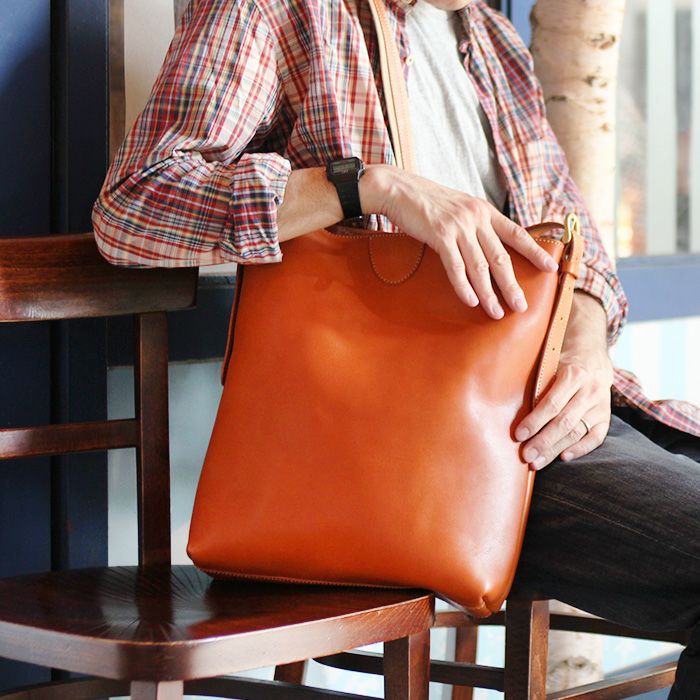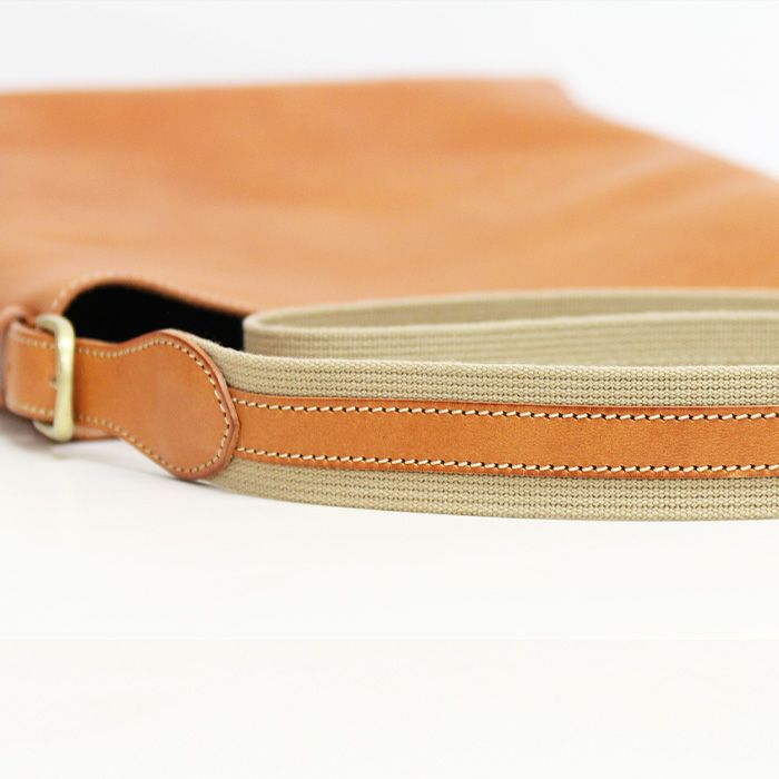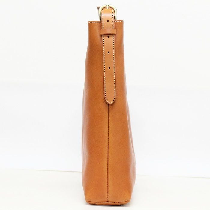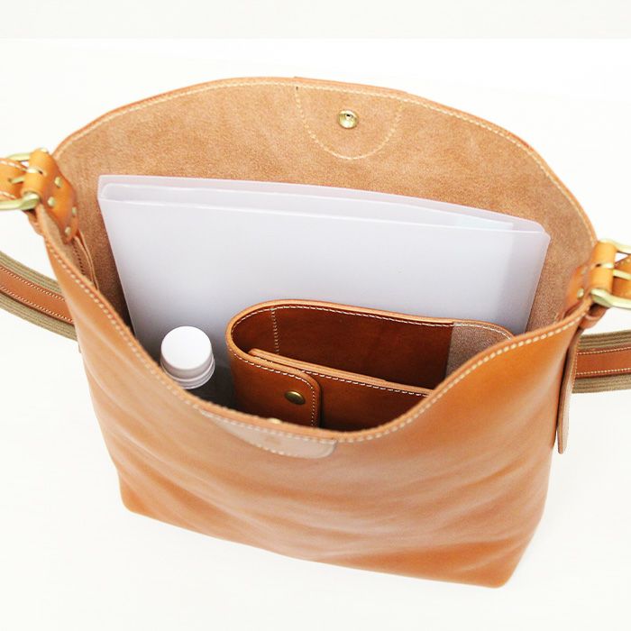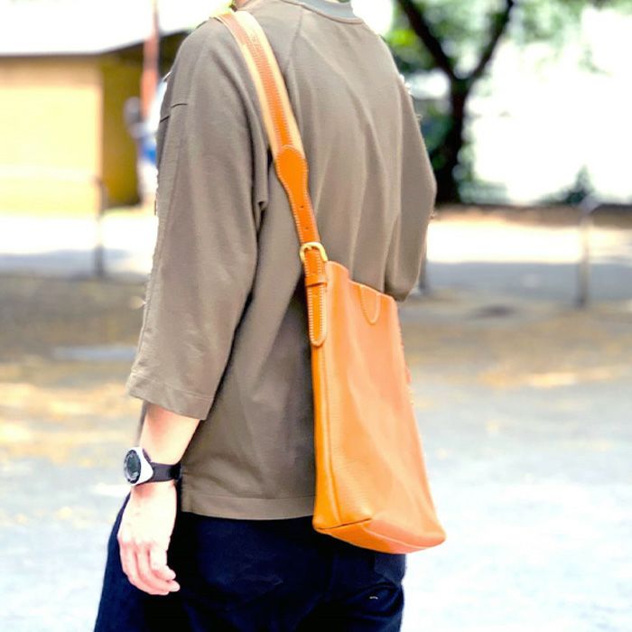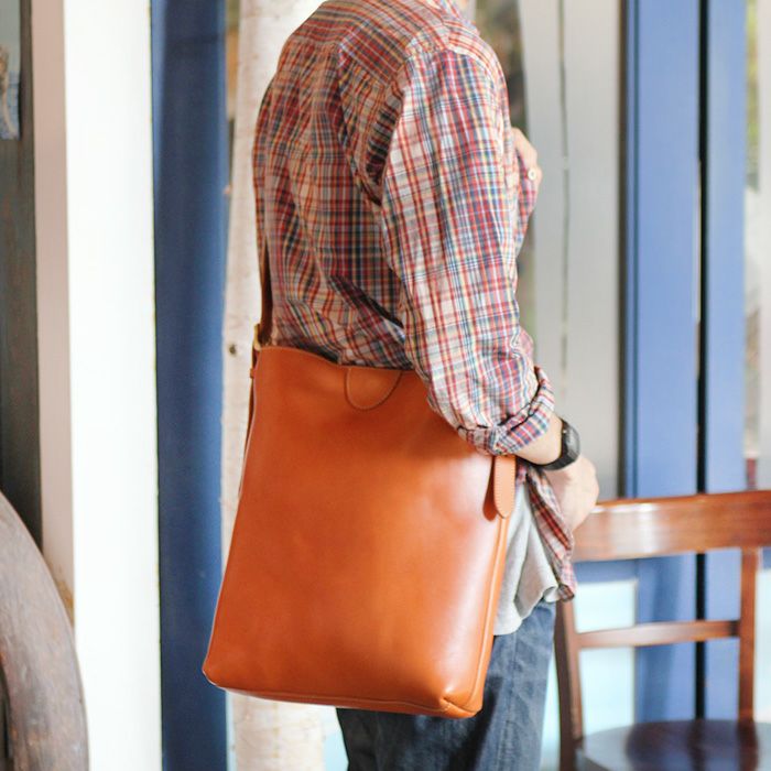 旅スタイルに最適、大判レザーのシンプルショルダー