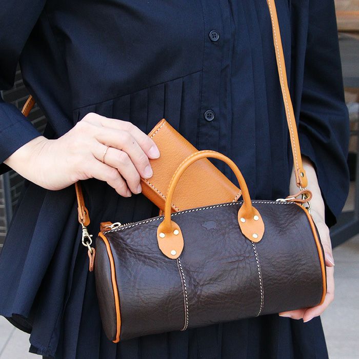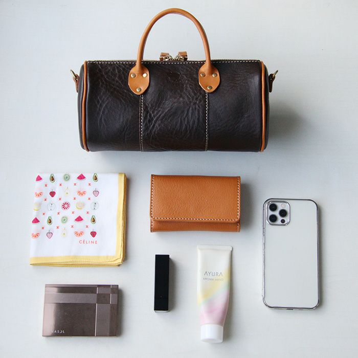 『ミニボストン』という名前ですがサイズは普段持ち歩きたいミニ財布、スマートフォンがすっぽり収まる普段使いしやすい絶妙なサイズ感に仕立てております。