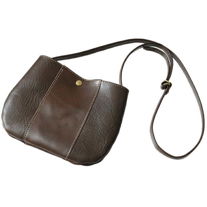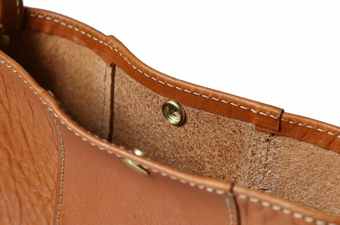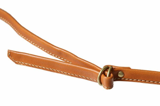 ショルダーストラップ 本体の雰囲気にマッチする、細見のショルダーストラップ。付け根はカシメ金具2つでしっかり固定しています。
