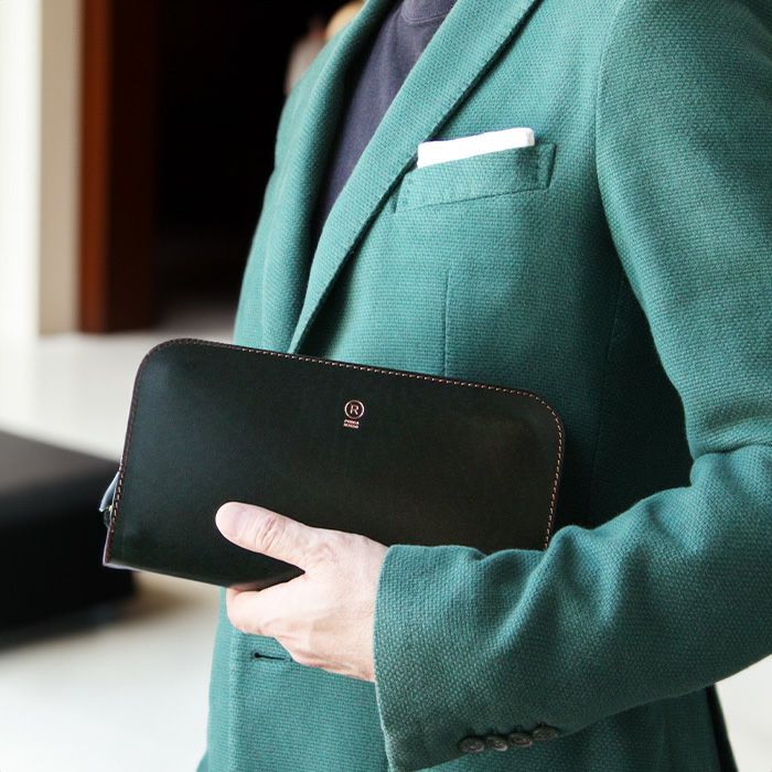 手元に携えて外出すれば、エレガントな紳士へと変貌させてくれる、とっておきのクラッチです。