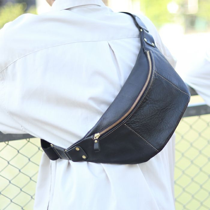 身体にフィットするように仕立てており、財布、スマートフォン、キーケースなどの最低限の荷物を持ち運べる、日常使いにちょうど良いサイズ感です。