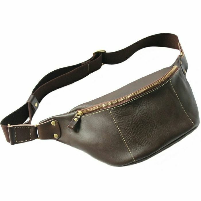 三枚のレザーを組み合わせた、本革らしい表情をたっぷりと楽しめる一品。革の風合いを十分に楽しめる大人のボディバッグです。