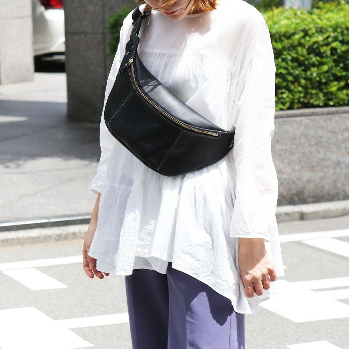 身体にフィットするように仕立てられたボディバッグは、街歩き以外にもサイクリング、フェス、レジャー等、 シーンや季節を問わず使用できる