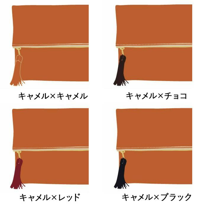二つ折り さり気なく付いたタッセルがお洒落です。※バッグ本体とタッセルの色の組み合わせはお選びいただけます。