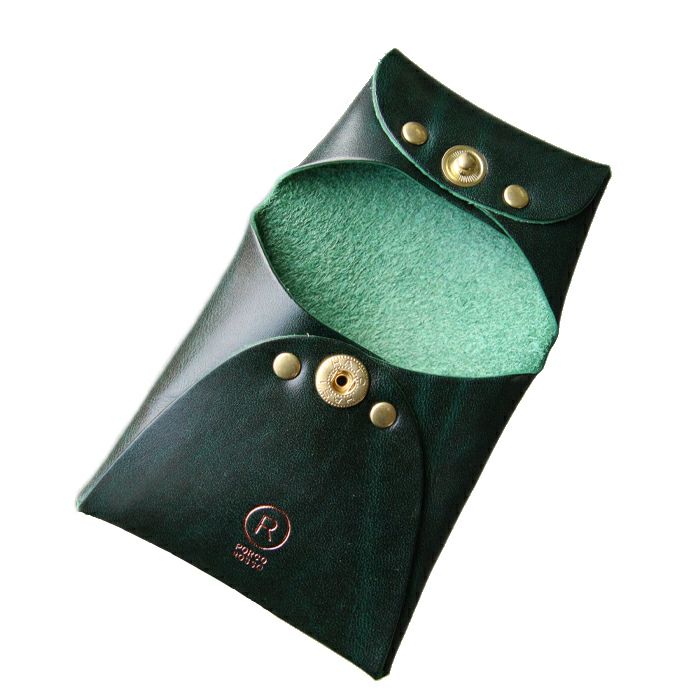ミシンを使わず、カシメとホックのみで仕上げたユニークなデザインです。 見た目以上にたっぷり入るコインポケット、出し入れしやすい様にフラップ裏