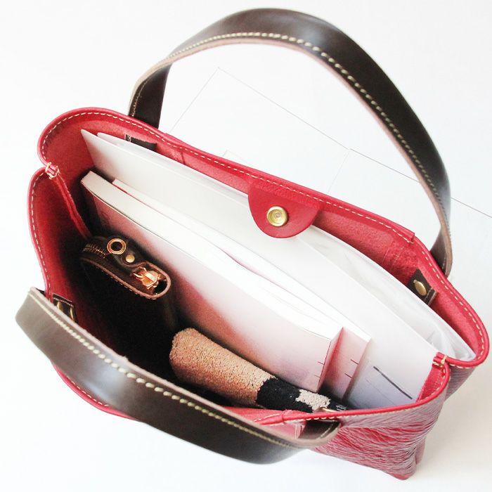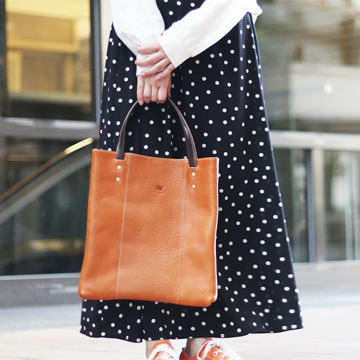 すっきりとした縦型トートバッグ。シンプルデザインで本革の落ち着きのある雰囲気が大人っぽさを漂わせるレッスンバッグです。