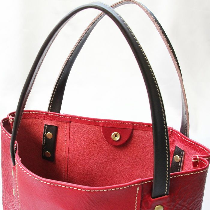 持ち手は2トーン仕様です。 持ち手の高さは14cmあるので腕にかけることができます。