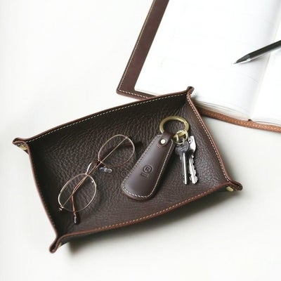 この度はありがとうございました 夫が忘れ物が多いため、出社時の必需品を入れるトレーとして購入しました とても美しい見た目で柔らかい素材ですので家具とも自然と調和します また製品紹介には特に記載がなかったのですがホコリ等が付きにくくお手入れがとてもしやすいです 無料のラッピングでも綺麗に梱包されており、届いた時には折れ曲がりがひとつとしてありませんでした イニシャルを入れるととても素敵なので迷われている方はぜひ入れてください!! プレゼントとしてとても喜んでもらえました 夫の忘れ物も少なくなり安堵です…笑