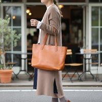 夫へのプレゼントでキャメルを購入しました。 シンプルで洋服を選ばず使え、サイズも男性が持つのにピッタリでした。 (女性が持つには少し大きめかもしれません) 内側ポケットは携帯が入るくらいのサイズでちょうど良く、 底の鋲も、革製のトートバッグでは無いものも多いので、 ここは自分的には購入のポイントになりました。 夫も気に入ってくれたようで、毎日持ち歩いています。 これから長く使ってもらえる、質の良い一品に出会えてとても満足しております。 丁寧に製作頂きありがとうございました。 今回はプレゼント用だったので、次回は自分用に他のバッグも購入しようと思います。
