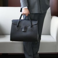 キャメルのトートが欲しくてネット検索、画像を見て即決でした!金具がないのでアクセサリーとの相性を気にしなくていいです。それにキャメルのバッグだと、ナチュラルなテイストのものが多くて。これはキリッとしているところがいい。私は日本人女性としては大柄な方なので、1番大きいサイズにしました。何でも放り込めるし、息子に譲ることもできます。今はまだいかにも新品という感じですが、使い込んでクッタリなっていくのがとても楽しみです。しっかりした皮革なので、重さはそれなりにあります。年を取って持てなくなるまで、楽しもうと思います!